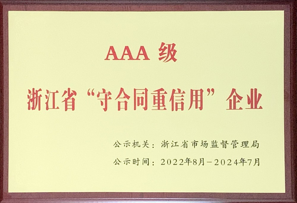 3A級浙江省“守合同重信用”企業
